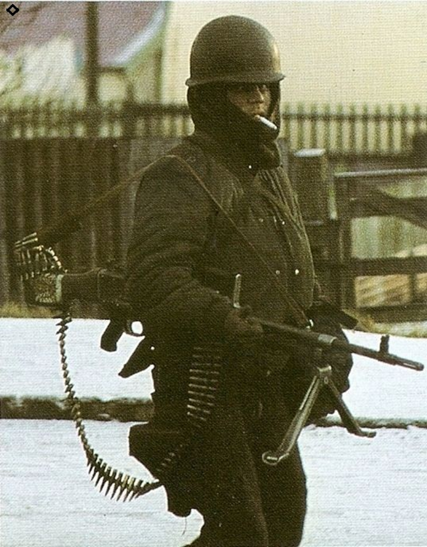 • Uso: La ametralladora MAG utiliza este sistema para funcionar como arma de apoyo mediano, portátil o montada en vehículos/aeronaves.