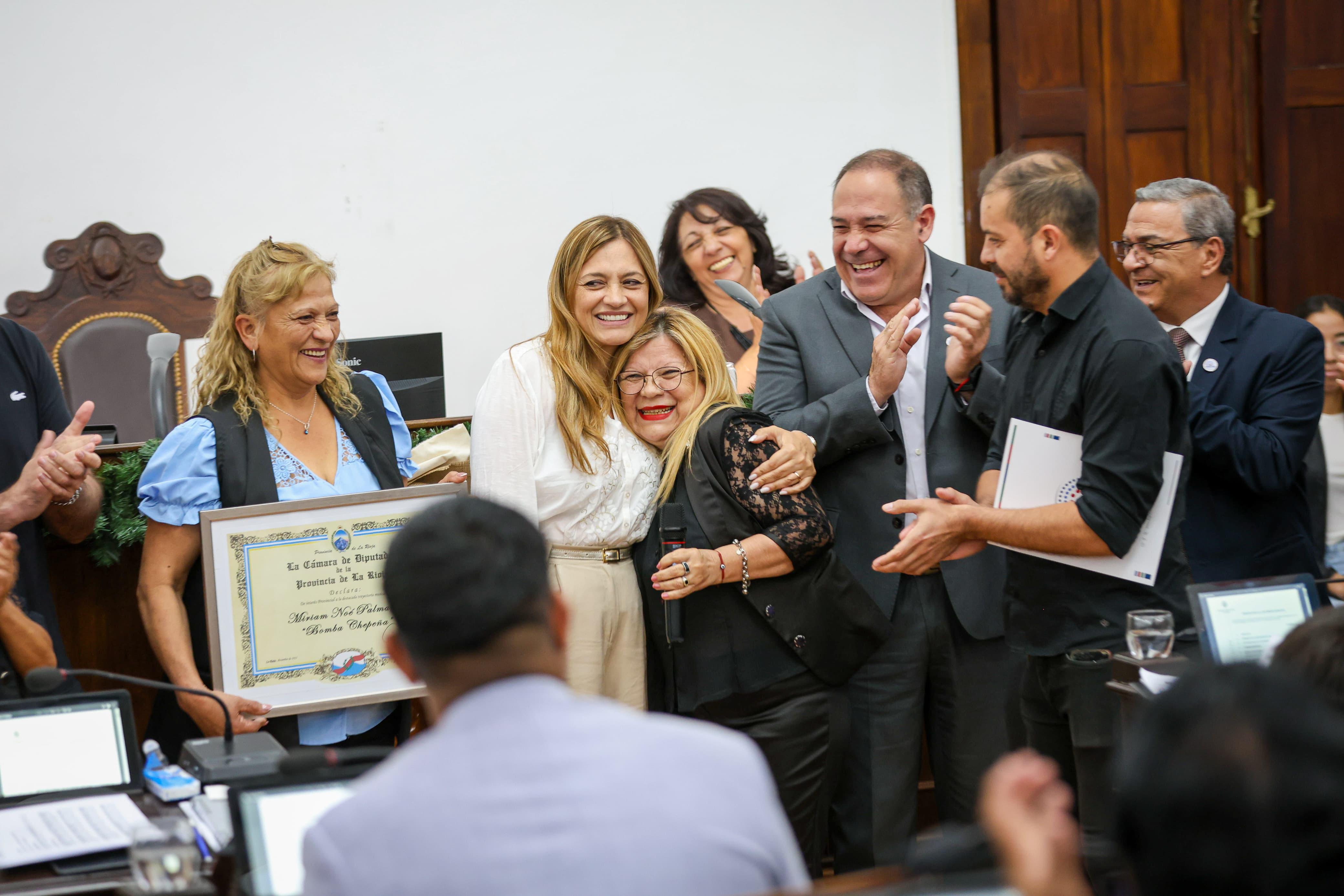 Antes de iniciar el debate parlamentario, el presidente del Bloque Justicialista, Cristian Pérez, solicitó la alteración del Orden del Día y un cuarto intermedio para entregar los Reconocimientos Legislativos que ponen en valor el talento, la trayectoria y el compromiso de instituciones y personalidades de la provincia. Entre ellas, se declaró de Interés Provincial la 1° edición del Certamen Niñachay; el título obtenido por el equipo Chamical Básquet en el Torneo Pre-Federal 2025; la destacada trayectoria musical de Miriam Noe Palma, “La Bomba Chepeña”; y el 75° aniversario de la Biblioteca y Archivo “General San Martín”, creada por Ley N° 1600 en 1950. También, recibieron sus reconocimientos Roque Nicolás Luna por su trayectoria en el fútbol; Araceli Belén Casas por su labor en patín, y los reconocimientos “Pedro Ignacio de Castro Barros” a Alberto Carlos “El Chango” Páez y al músico Diego Gabriel Álvarez por sus aportes al folklore, la cultura y la identidad musical riojana.