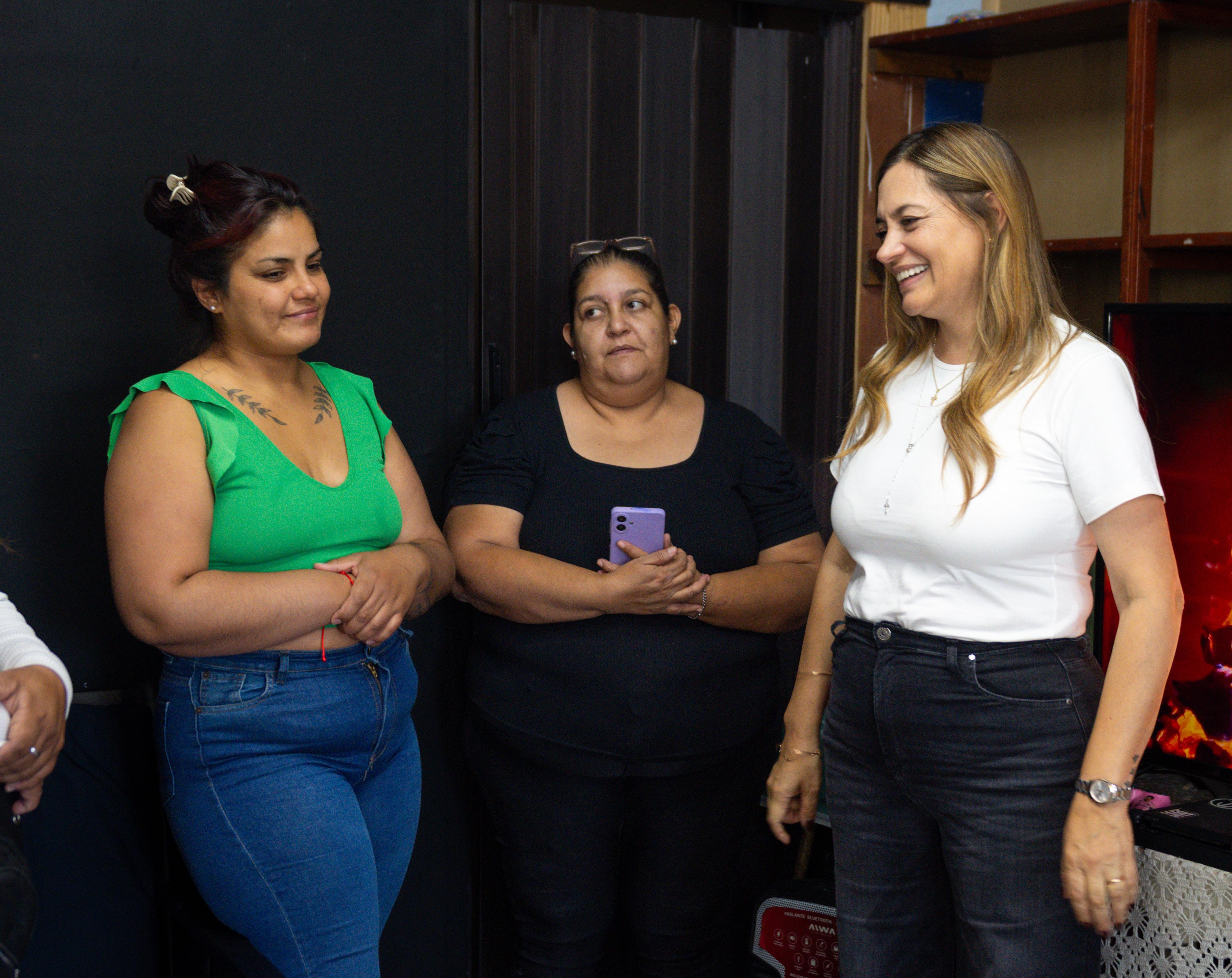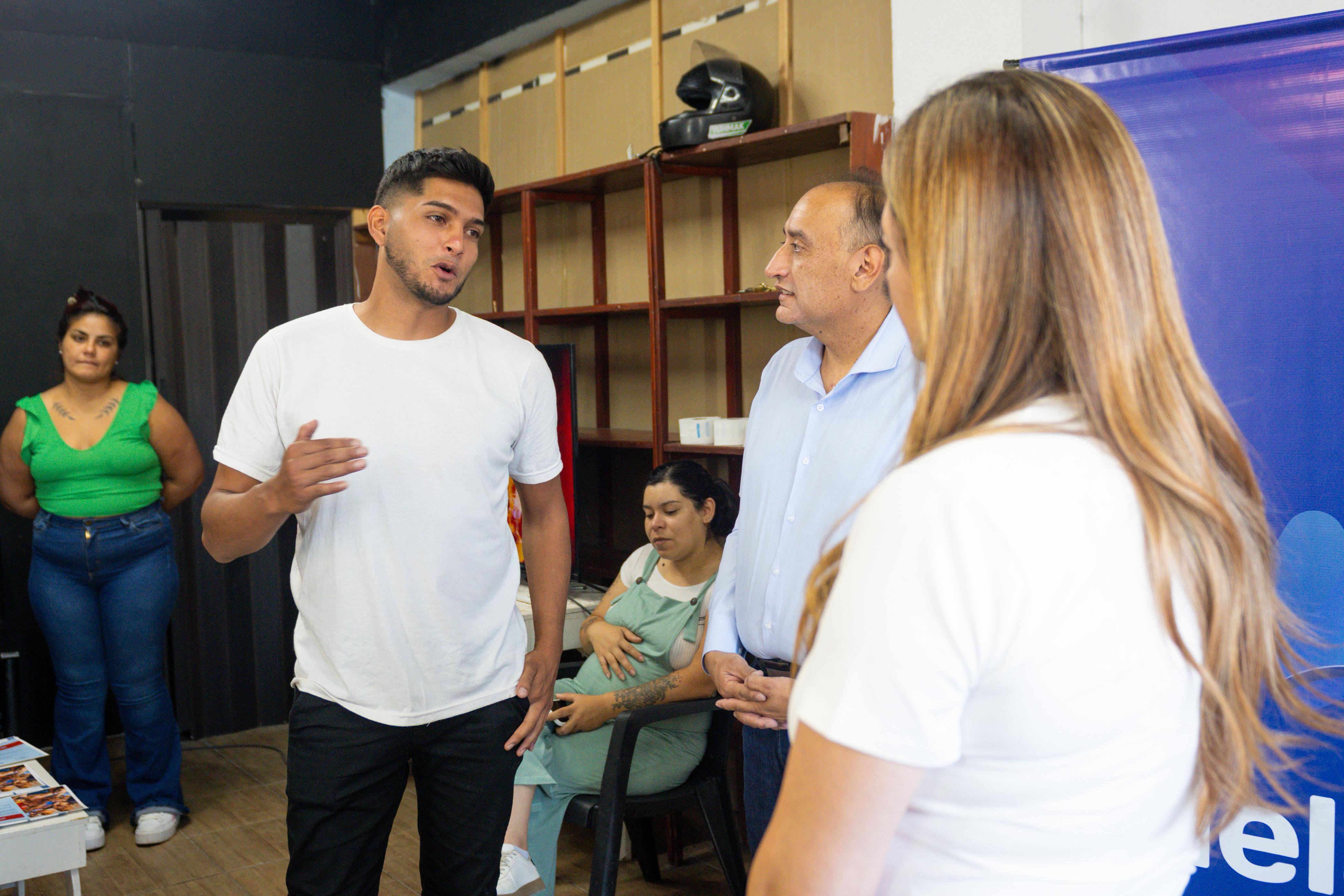 En esta oportunidad, visitó el barrio San Vicente, donde se reunió con Franco, Anabel y Ángela, emprendedores de la zona, para conversar sobre el desafío de mantener sus fuentes laborales en un contexto complejo y expresar su acompañamiento.